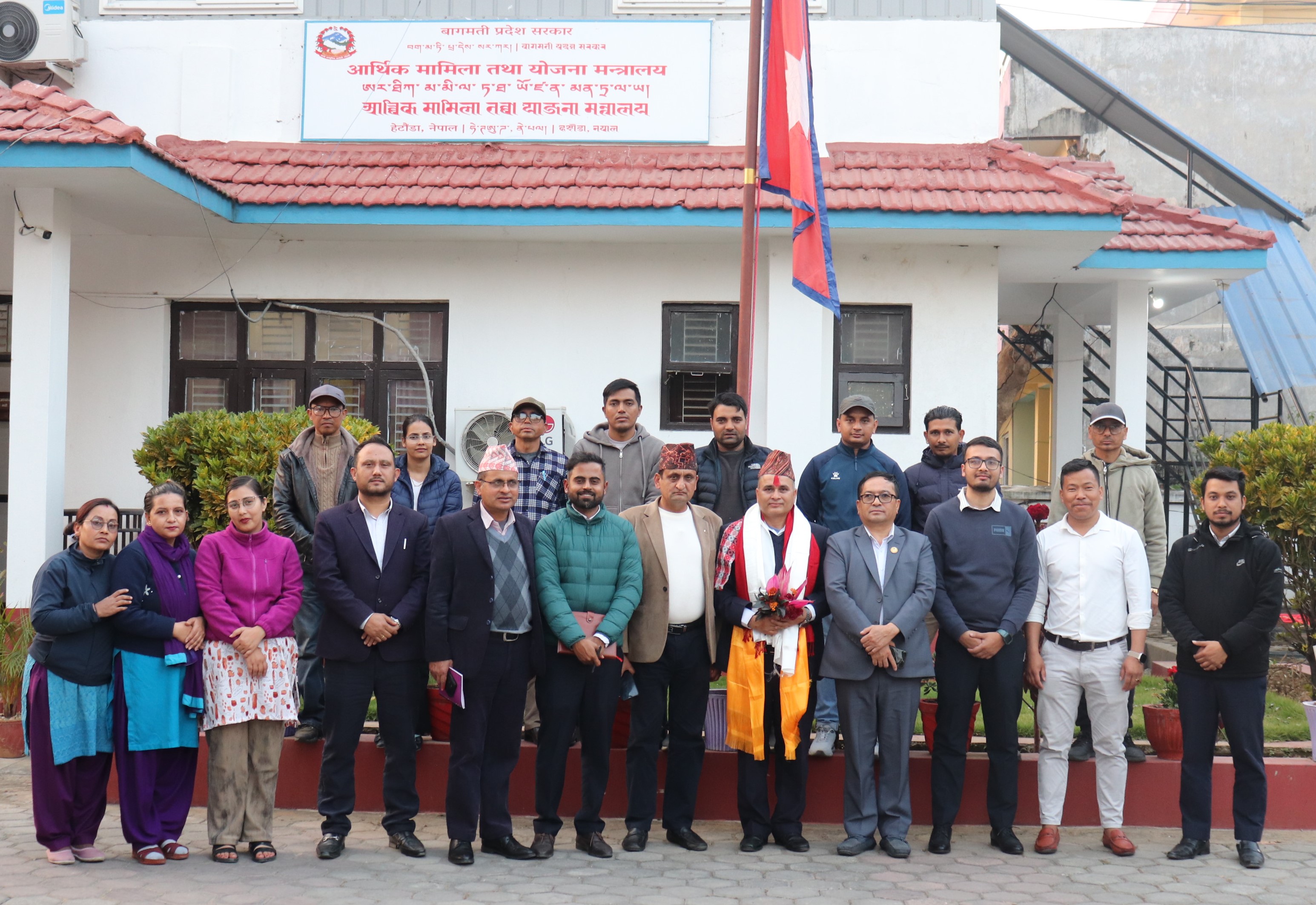 माननीय मन्त्री कुन्दन राज काफ्लेसँग आर्थिक मामिला तथा योजना मन्त्रालयका कर्मचारीहरुको सामूहिक तस्ब…